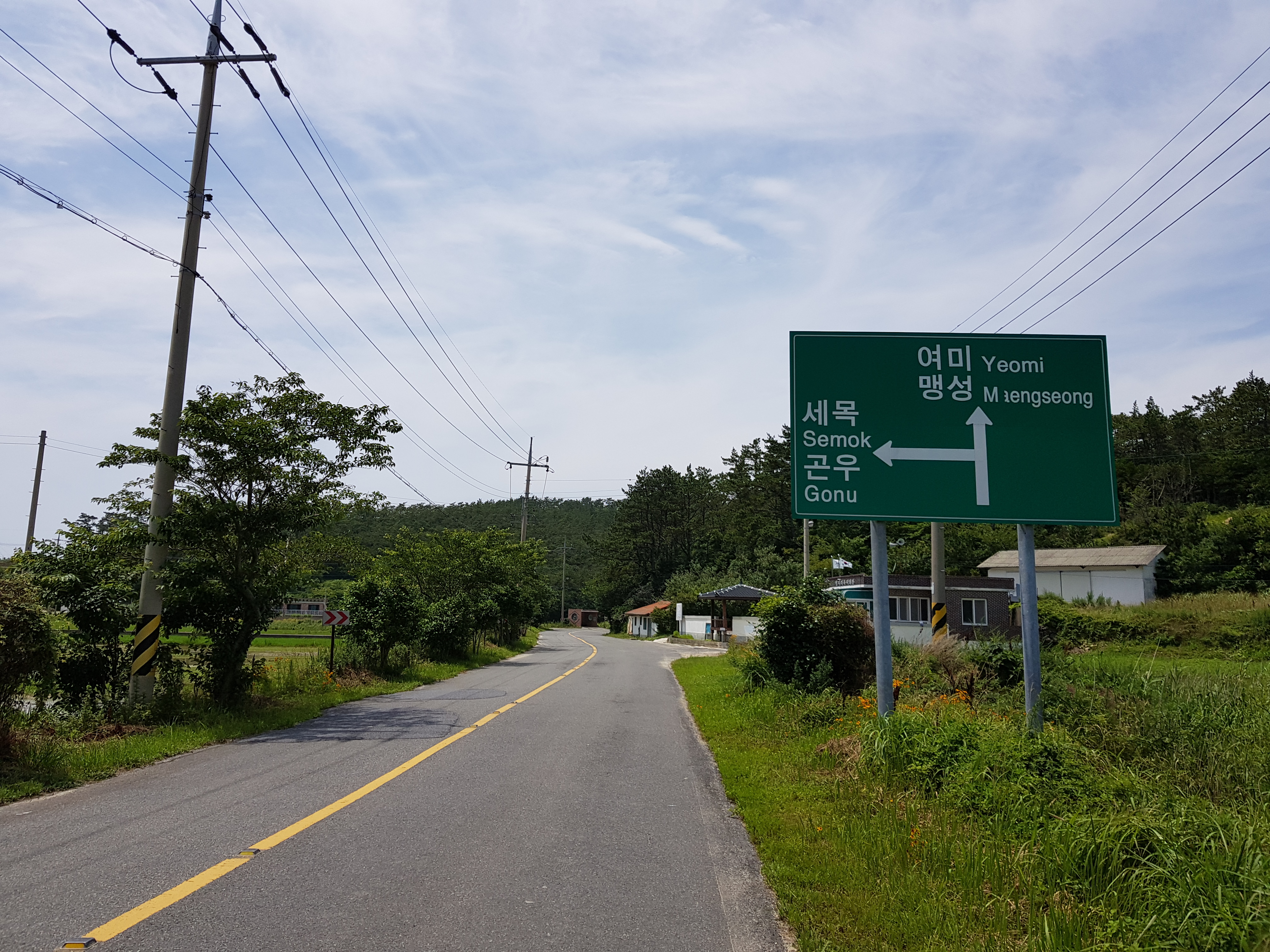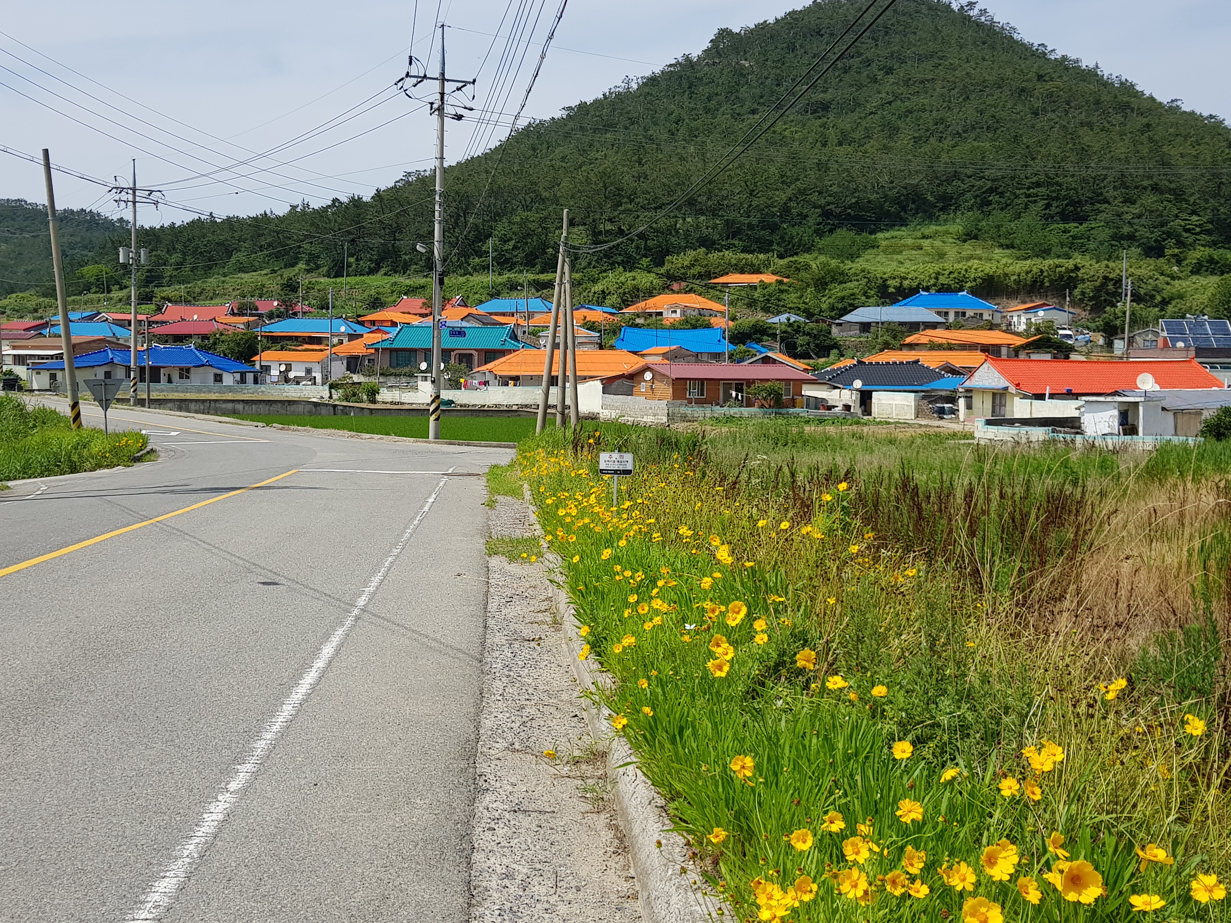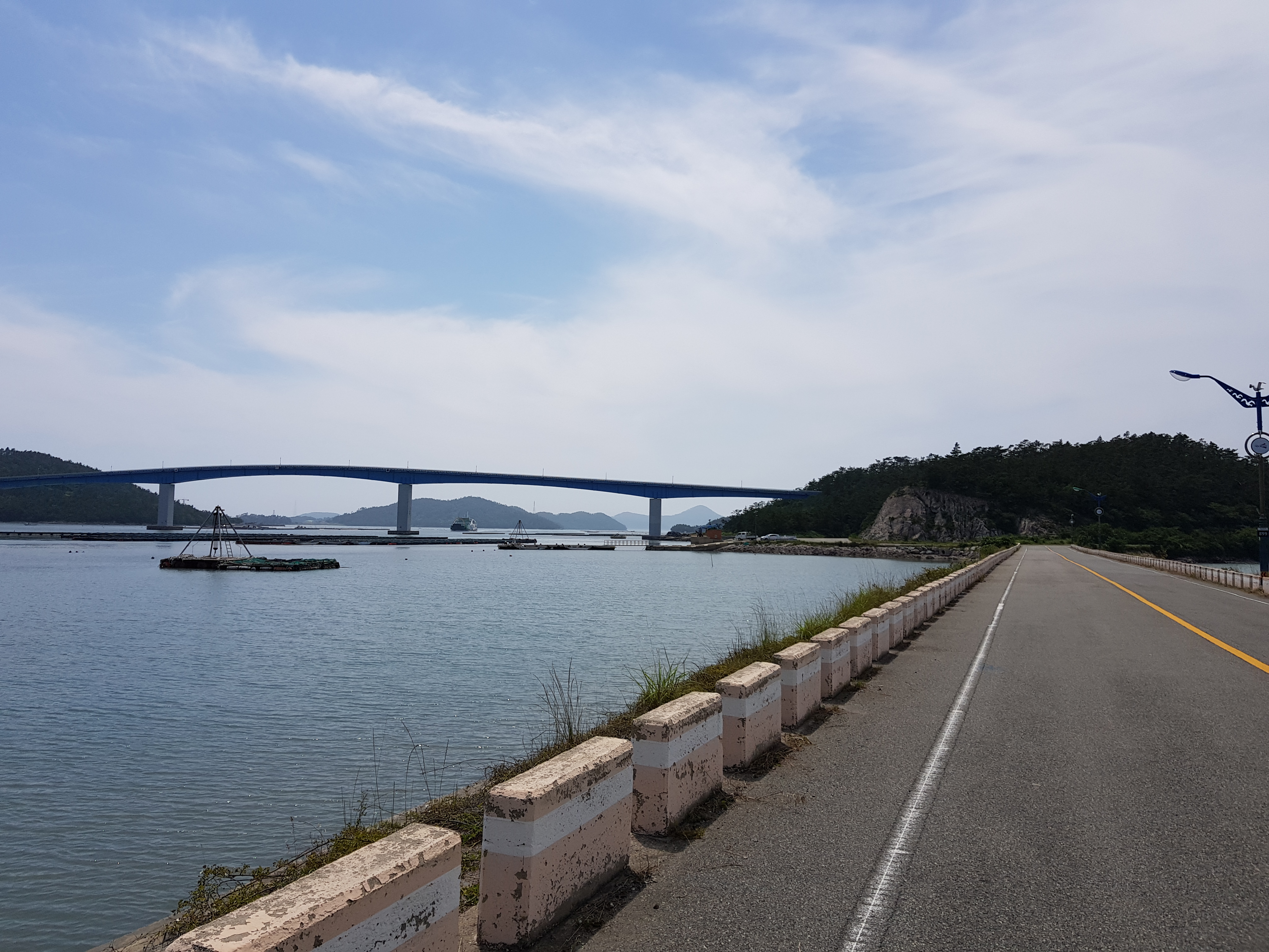 조도대교를 지나와서 <ㄱ자 모양의 길을 따라 상조도로>